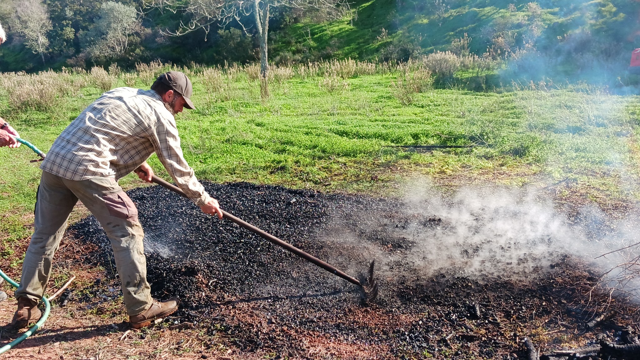 Die Pflanzenkohle muss nun noch "aktiviert" werden, damit sie Nährstoffe und Bodenlebewesen aufnehmen kann. Die aktivierte Pflanzenkohle wird mit Kompost vermischt und als Bodenverbesserer eingearbeitet. Wir wollen das bei unseren Pistazien anwenden.