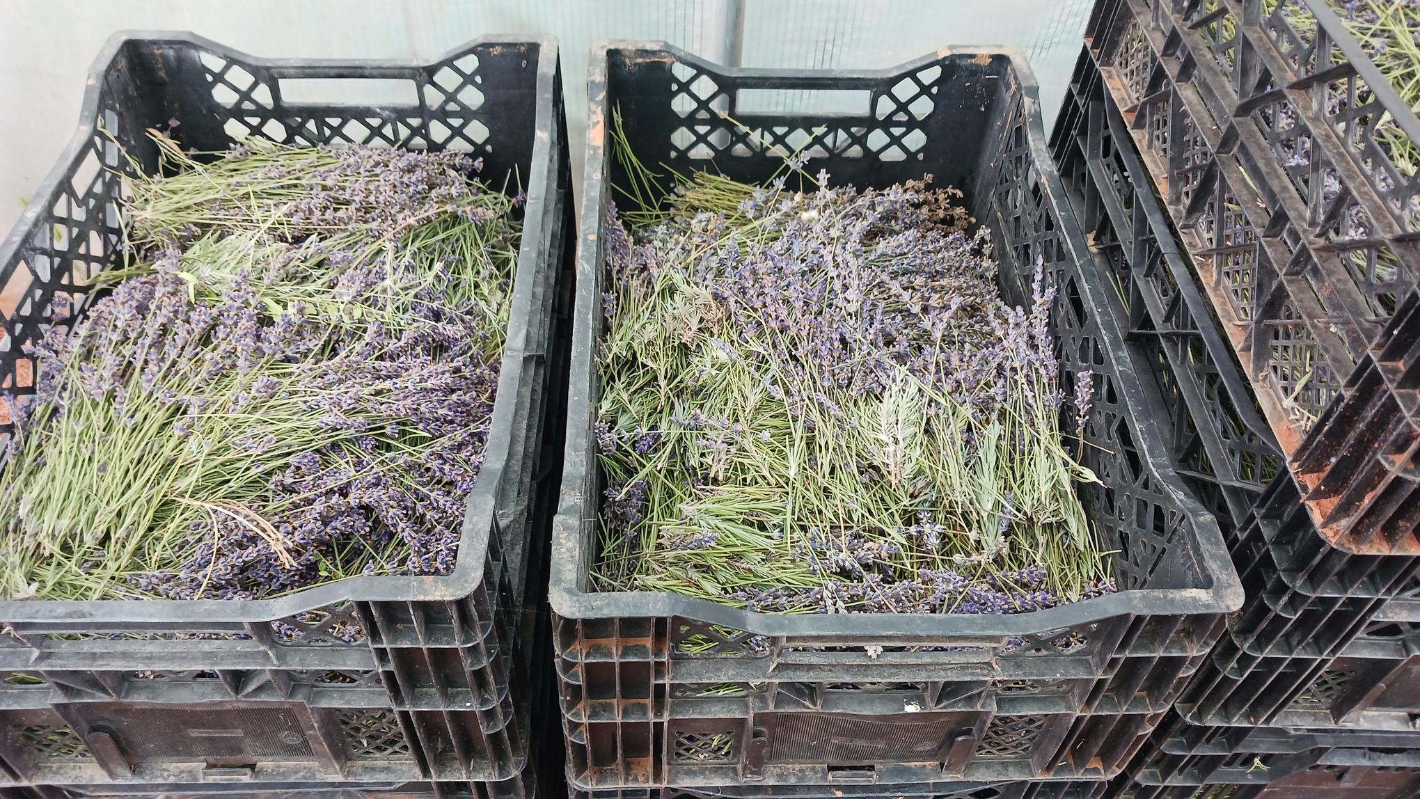 Neben dem Grüner Lavendel, der wegen einer großen Bestellung mehr Zeit einnimmt, habe ich noch die Myrte und den Muskatellersalbei eingeschoben. Leider ist das Wetter noch ungewöhnlich instabil, normalerweise haben wir spätestens ab Mitte Juni durchgängig sonniges und (sehr) warmes Wetter. Daher habe ich noch vor ein paar Tagen den Lavendel geerntet, da wir wieder eine Periode mit kühlen, wolkigen Tagen angesagt war. Ist dann auch so gekommen, so war ich doch froh, die Ernte erledigt zu haben. Der Lavendel war schon am Abblühen, das ist ein guter Zeitpunkt für die Ernte. Insgesamt ist die Ernte beim Lavendel nicht so groß ausgefallen, ich hoffe, dass irgendwann einmal mehr Pflanzen nachwachsen als kaputt gehen. Dieses Jahr ist die Anzucht recht erfolgreich gewesen, nun gilt es, die Pflanzen auf dem Acker bestmöglich zu versorgen.