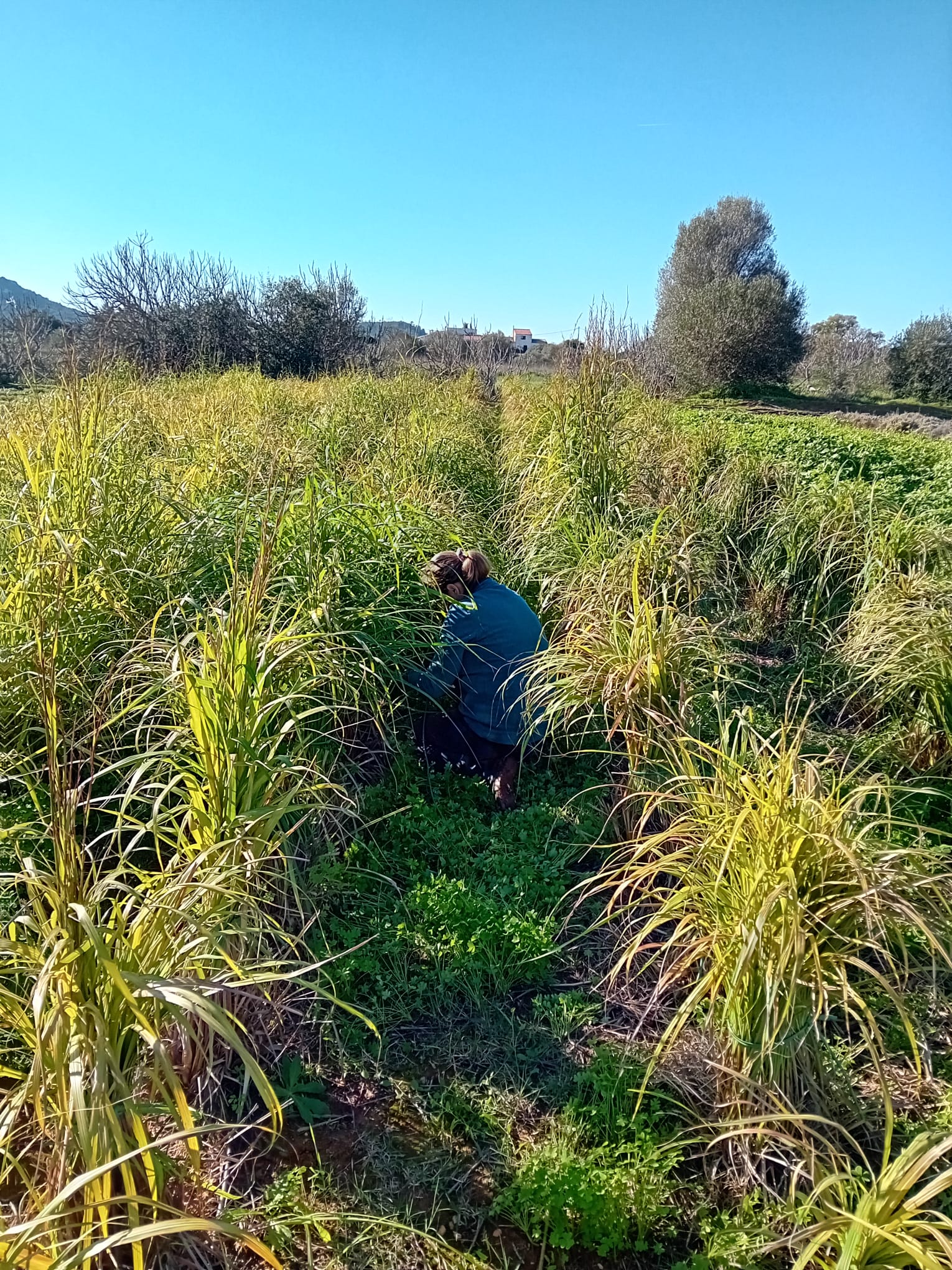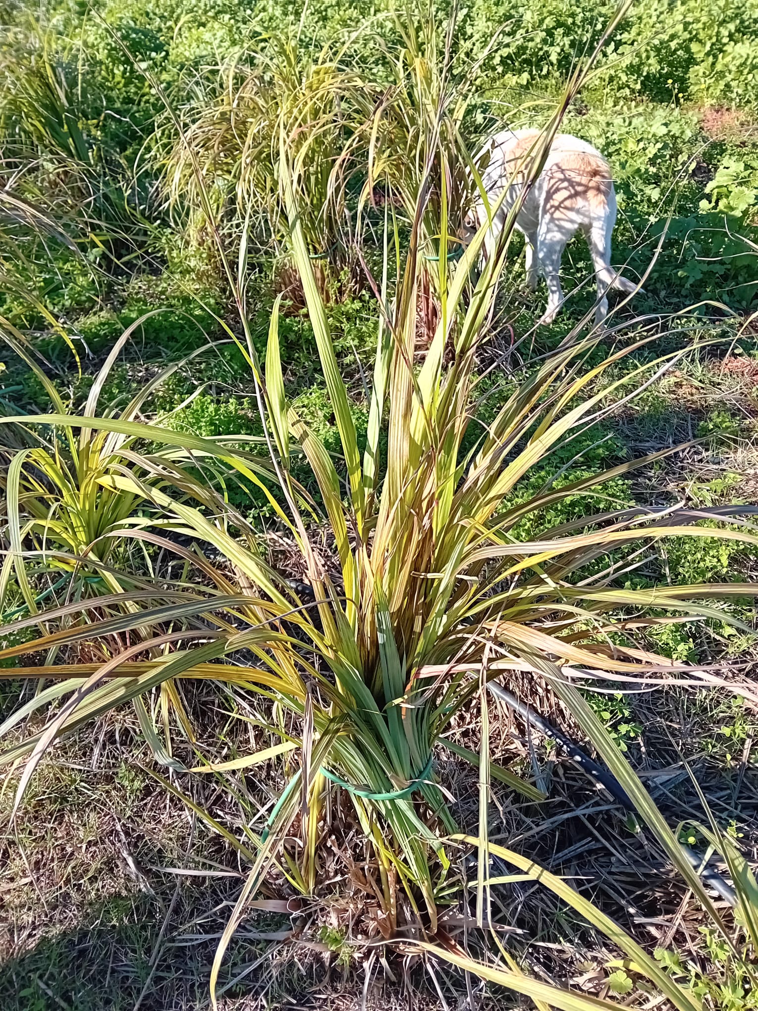 Sonnige Tage bringen klare, kalte Nächte. Schon zweimal hatten wir morgens Temperaturen um die 0 Grad - höchste Zeit, sich ums Zitronengras zu kümmern! Nach einem Winter hatten wir schon mal alle Pflanzen verloren, letzten Winter hat ihnen der Frost ebenfalls zu schaffen gemacht. Wir hatten die Gräser nicht zurück geschnitten, aber einige haben doch einen Schaden erlitten und lange gebraucht, wieder neu auszutreiben.