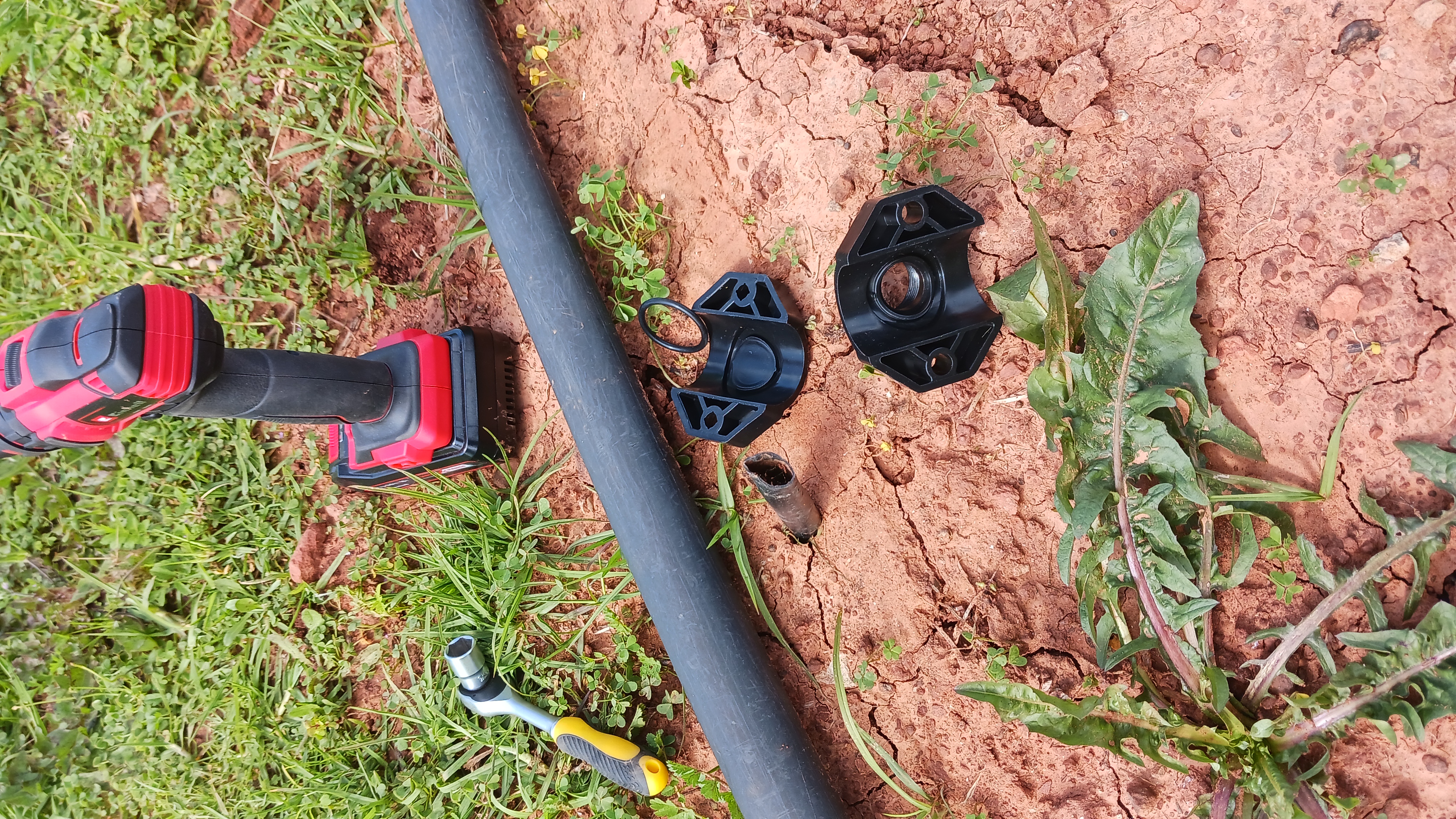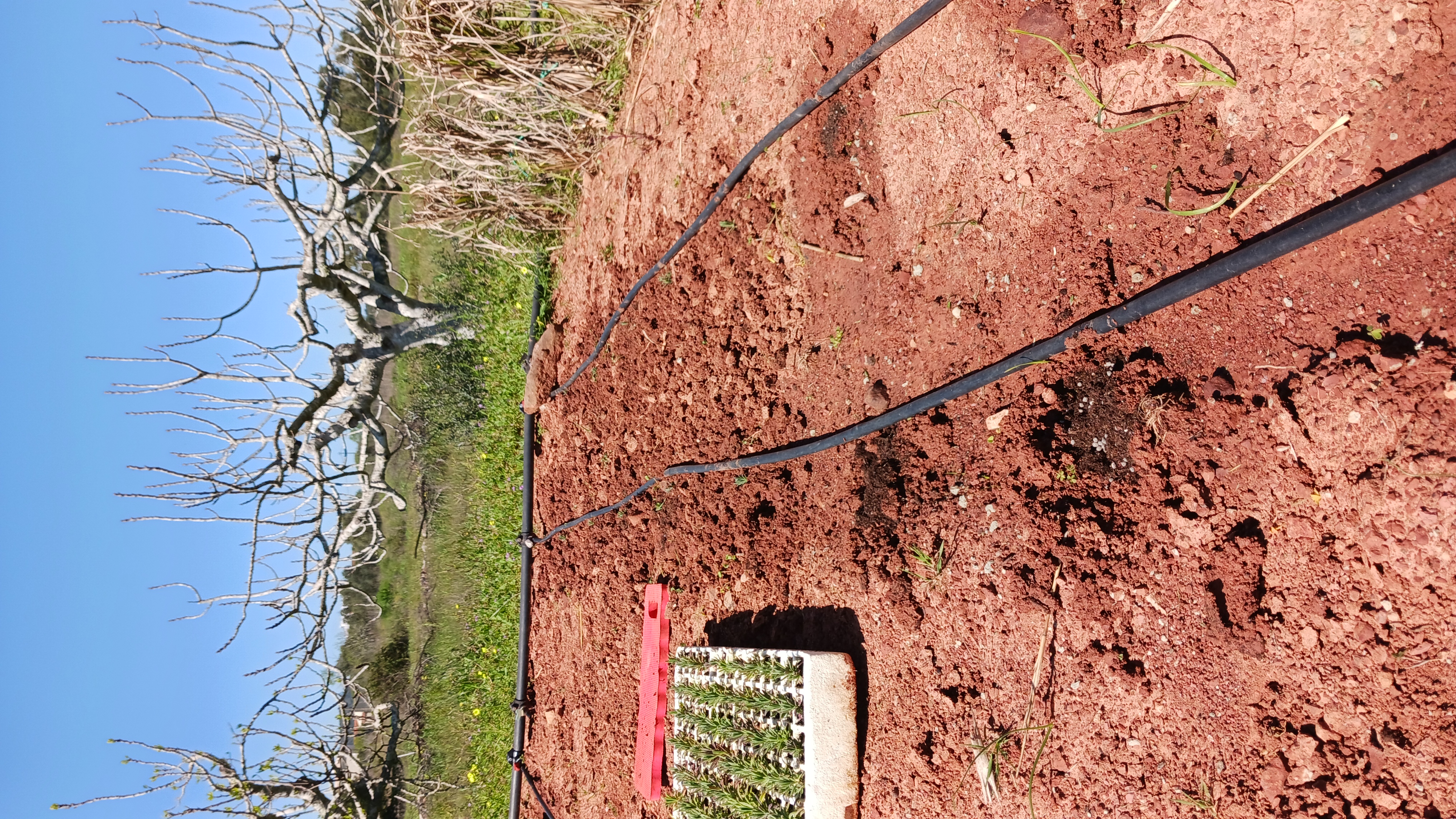 Das Gewächshaus ist noch voll, und in den Startlöchern bzw. Anzuchtschalen sind noch soviele Jungpflanzen, die aufs Feld oder umgetopft werden müssen. Erst habe ich die Bewässerung vorbereitet, neue Anbauschellen und Hähne montiert, die Rohre ausgelegt und etwas Wasser laufen lassen, um zu sehen, ob keine Löcher oder Schnitte in den Rohren sind - also extra Löcher, die da nicht sein sollen ;-)