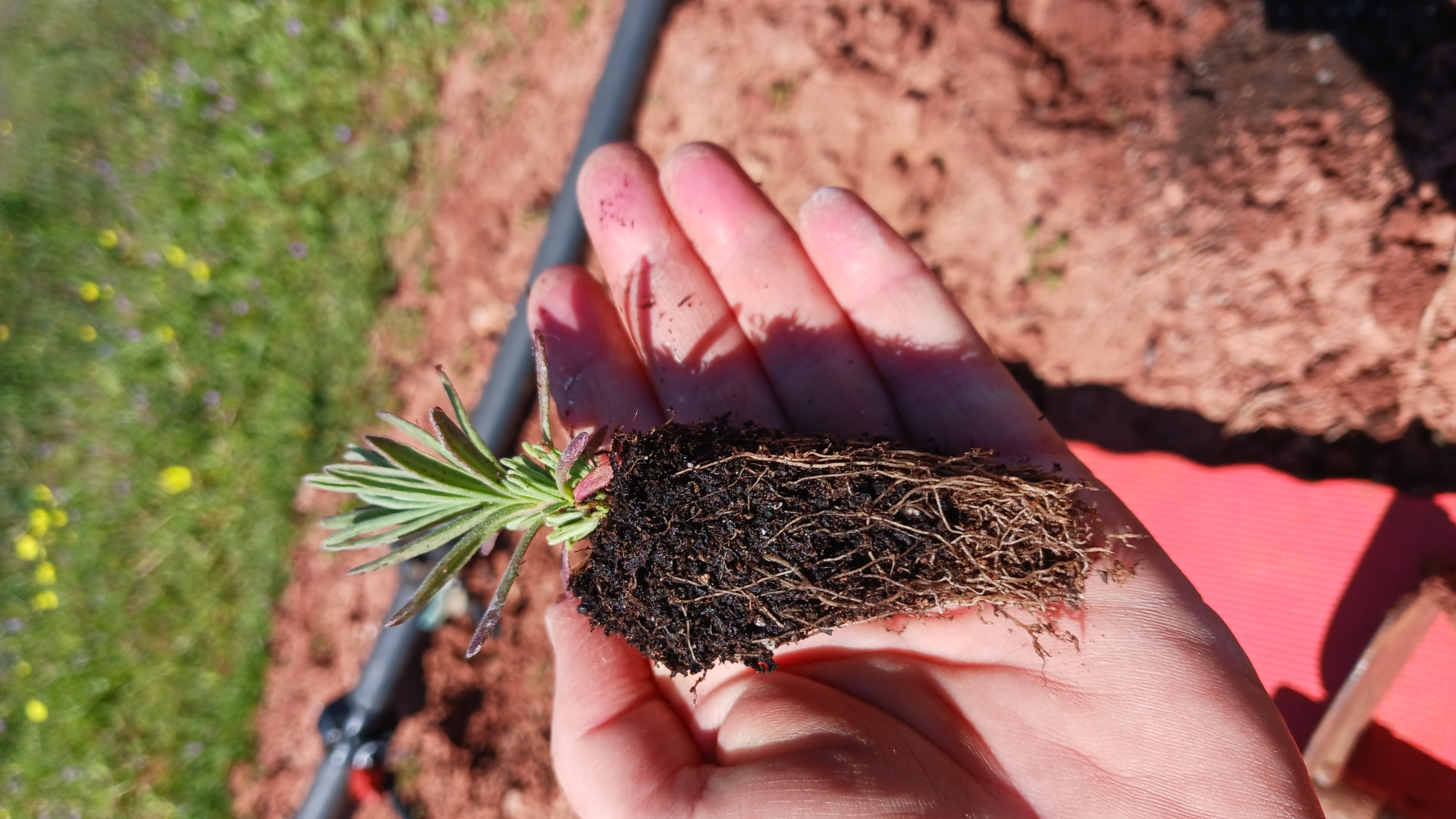 Die Lavendel saßen schon etwas länger in den Styroportrays, so dass sie genug Wurzeln entwickelt haben, um sie direkt pflanzen zu können. Das Umtopfen in einzelne Töpfe konnte ich mir damit sparen. Nun hoffe ich, dass das Wetter nicht mehr so extrem wird, also zu nass, zu trocken, zu heiss, damit sich die Jungpflanzen gut entwickeln können. Insgesamt konnte ich knapp 300 Jungpflanzen in die Erde bringen. Ich hatte schon im Februar eine Reihe Lavendel gepflanzt, aber die haben durch den vielen Regen keinen Zuwachs gemacht - sind aber auch nicht kaputt gegangen, was natürlich auch eine Erleichterung ist.